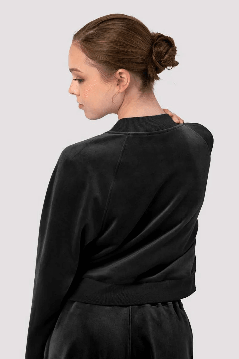 apresentando A jaqueta Bomber De Veludo Bloch Ladies Amanda Na Clássica Cor Preta, Sua Escolha Ideal Para Um Look Chique E Luxuoso. Esta Deslumbrante Jaqueta Bomber Não Só Oferece Calor, Mas Também Adiciona Um Toque De Elegância Ao Seu Guarda-roupa. Perfeita Para Saídas Casuais E Sessões De Aquecimento, Esta Jaqueta é Um Item Indispensável Para Qualquer Mulher Antenada Na Moda.